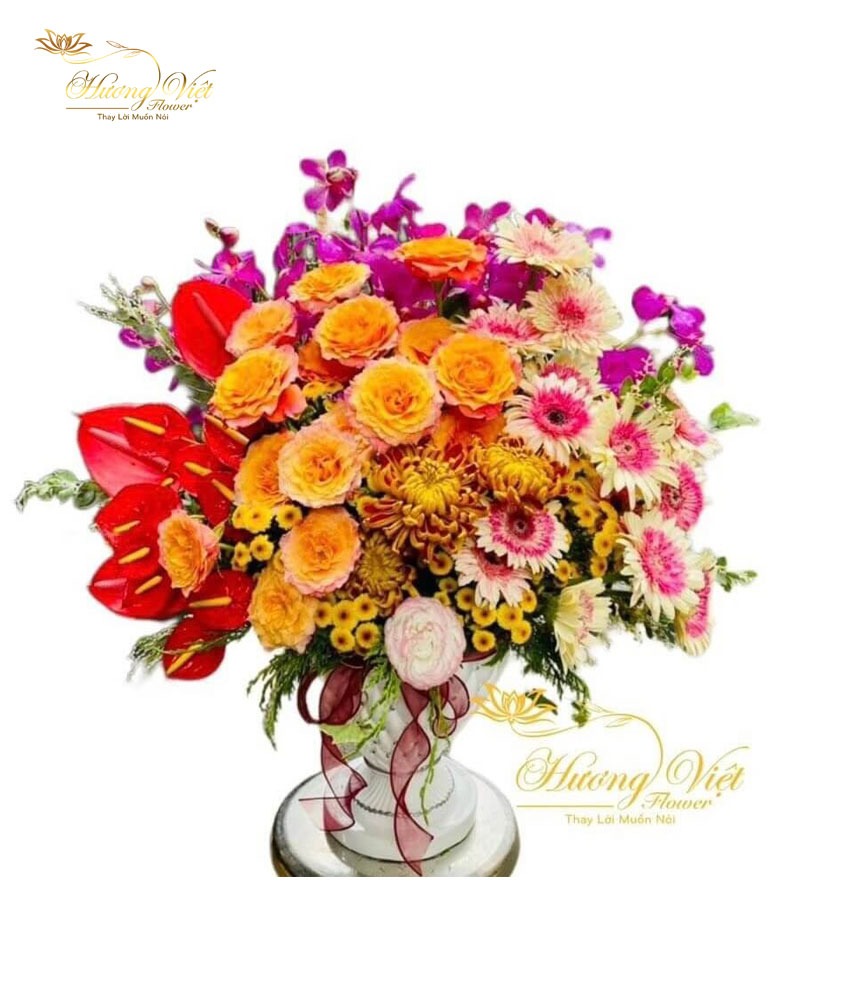 - Hương Việt Flower nhận thiết kế hoa theo yêu cầu tùy vào ngân sách của khách hàng. Hãy gọi ngay hotline 0789 151 148 để yêu cầu tư vấn cụ thể hơn nhé.
